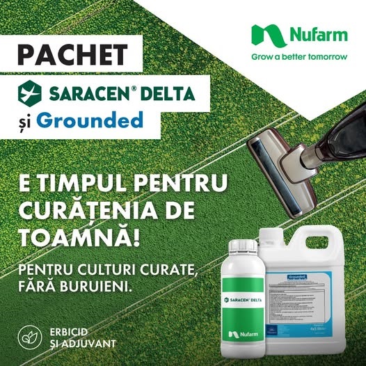 Nufarm oferă fermierilor o soluție cu un raport optim între cost și eficiență, contribuind la sănătatea și productivitatea culturilor de cereale păioase – pachetul Saracen Delta împreună cu Grounded!