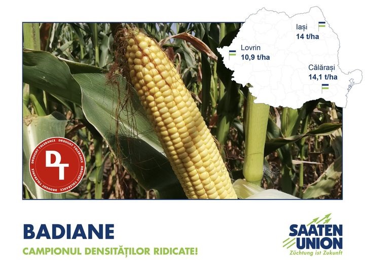 BADIANE reprezintă o alegere foarte bună pentru fermele care vor un hibrid robust, adaptabil și cu recoltare rapidă datorită ritmului rapid de pierdere a umidității din boabe.
