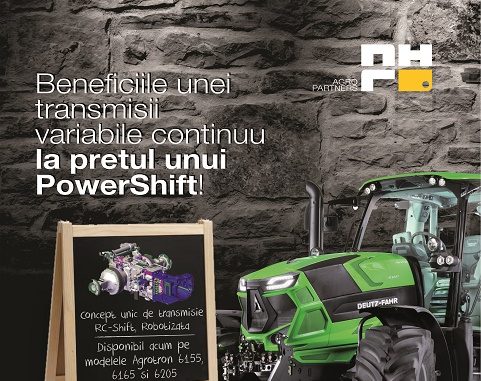 Achiziționează acum un tractor Deutz-Fahr cu transmisie robotizată, RC-Shift cu mod auto, cu beneficiile unei transmisii cu variație continuă, la prețul unui PowerShift!