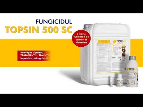 Stiati ca exista o solutie pentru toate aceste probleme? TOPSIN 500 SC are actiune fungicida, de contact si sistemica, fiind absorbit de plante prin frunze si radacini. Are un foarte bun efect preventiv si curativ fata de un spectru larg de agenti fitopatogeni care provoaca boli ale plantelor cu infectie de suprafata si sistemica. Atentie! Eficacitatea cea mai buna se obtine atunci cand tratamentele se aplica preventiv, inainte sau la aparitia primelor simptome de boala.