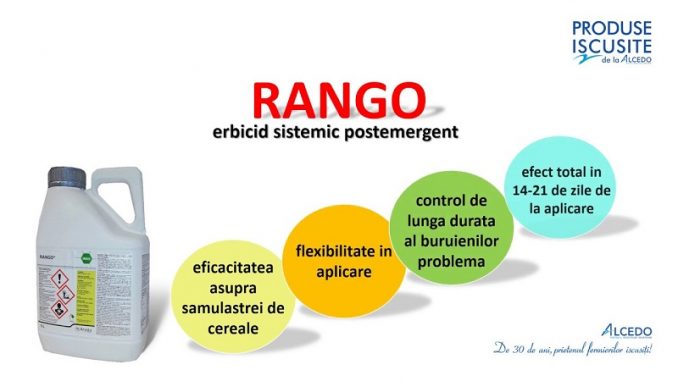 RANGO este un erbicid sistemic postemergent pentru combaterea buruienilor monocotiledonate anuale și perene, precum și a samulastrei de cereale din culturile dicotiledonate. Acesta este absorbit rapid de către frunzele buruienilor graminee și translocat în întreaga plantă.