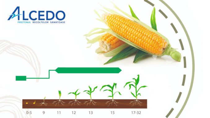 - CEREDIN FORTE 464 SL: 1,0 l/ha, cu aplicare cand porumbul are 4-6 frunze, iar buruienile dicotiledonate sunt in faza de rozeta;