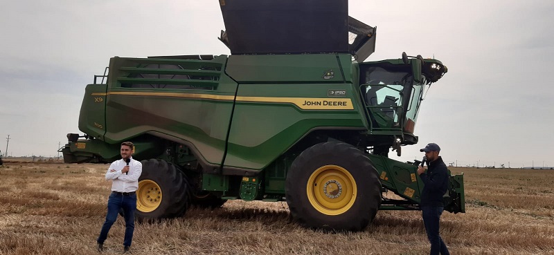 Invitații prezenți au putut asista la o demonstrație a utilajelor și implementelor expuse în ferma Polirom Prod din localitatea Siliștea, județul Teleorman și chiar la o recoltare în câmp cu combinele John Deere X9 1100 și T550i.