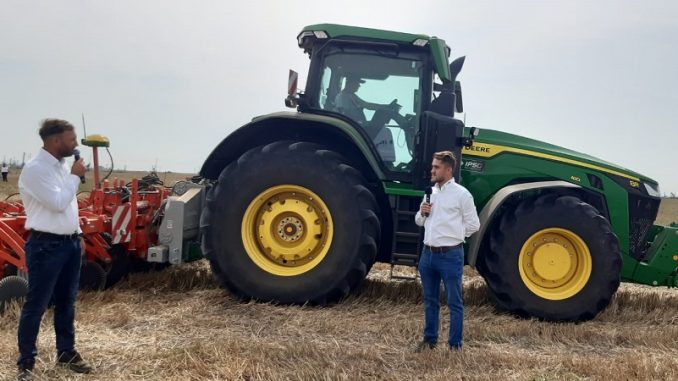 Tractorul JOHN DEEE 8R 410 EVT cu transmisie electrică a reprezentat noutatea în cadrul evenimentului. Acesta va fi disponibil pentru fermierii din România la finalul anului 2023.