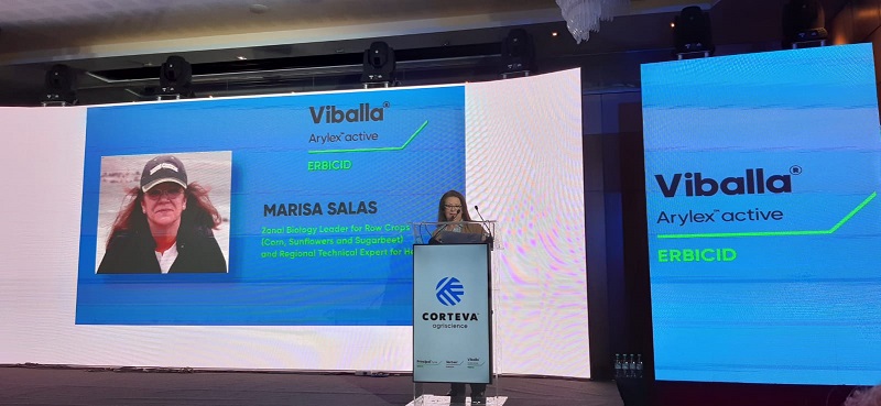 Specialiștii Corteva Agriscience: Marisa Salas – Zonal Biology Leader for Row Crops (Corn, Sunflowers and Sugarbeet), and Regional Technical expert for Herbicides Corteva Agriscience, Adrian Teban – Field Scientist și Adrian Ionescu Category Marketing Manager Fungicides, Insecticides & Biologicals România & Moldova au prezentat pe rând noile produse lansate, începând cu Viballa®.
