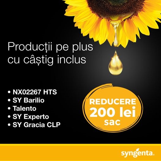 Bucurați -vă de o ofertă specială până pe 31 martie: aveți reducere de 200 lei la fiecare sac achiziționat. Oferta este valabilă în limita stocului disponibil pentru comenzi totale de minim 10 saci: https://bit.ly/Syngenta_hibrizi_HO