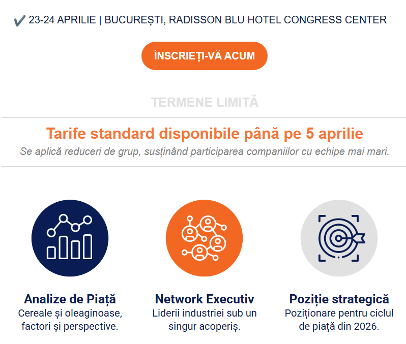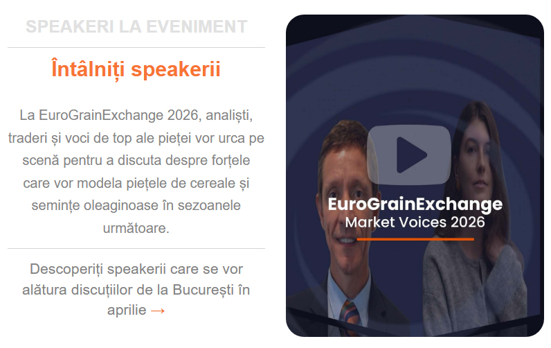 În acest panel de discuții de la EuroGrainExchange 2026, vorbitori reprezentând producția, comercializarea, logistica și sectorul furajelor vor explora modul în care aceste elemente interacționează pe piața cerealelor și ce presiuni modelează astăzi lanțul de aprovizionare cu cereale.