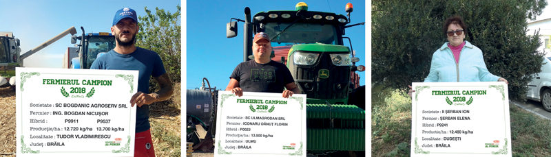 Un alt fermier campion este și domnul Cătălin Gîrlea care a obținut 14.400 kg/ha cu hibridul P9415, 11.1740 kg/ha cu P0216 și 11.300 kg/ha cu hibridul P0023.