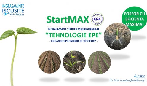 Pentru un start bun al culturilor, o răsărire uniformă și plante mai viguroase, vă recomandăm fertilizanții din gama StartMAX: StartMAX EPE (Enhanced Phosphorus Efficiency) pentru o dezvoltare viguroasă a rădăcinilor și o absorbție crescută a cationilor din sol (calciu, magneziu, fier, mangan, zinc).