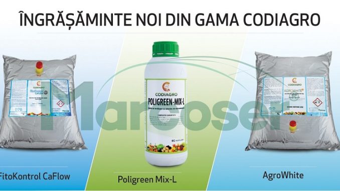 “CODIAGRO oferă soluţii care contribuie la sănatatea şi nutriţia plantelor dar şi la obţinerea de producţii ridicate şi de calitate superioară. Produsele sunt reprezentate de fertilizatori, corectori de nutriţie, biostimulatori şi produse cu acţiune specială. Fertilizatorii şi corectorii de nutriţie asigură aprovizionarea eficientă a plantelor cu elementele necesare, fiind disponibili pentru aplicare foliară sau radiculară. Biostimulatorii sunt produse pe baza de aminoacizi, ce îmbunătăţesc absorbţia la nivel foliar şi radicular. La rândul lor, produsele cu acţiune specială ajută la absoţia excesului de umiditate de pe frunze, inducerea rezistenţei plantelor la atacul bolilor micotice precum şi la reglarea pH-ului tratamentelor aplicate. Produsele se evidenţiază prin prezenţa în compoziţia lor a moleculelor AMEC,molecule de acizi organici carboxilici modificaţi, cu greutate moleculară mică, complet biodegradabili în sol şi în plantă, siguri şi prietenoşi cu mediul. Această tehnologie ce aduce o mare valoare şi performanţă produselor ajută la eficientizarea proceselor de transport şi translocare a nutrienţilor în plantă, crescând astfel metabolismul plantei şi capacitatea acesteia de a se autoapăra în faţa patogenilor şi a condiţiilor de mediu mai puţin prielnice. Moleculele AMEC sunt Produsele CODIAGRO sunt menite să sprijine creştere şi dezvoltarea plantelor. Astfel, începând cu primele faze de vegetaţie, produse precum Sprintene şi Radisol Starter asigură dezvoltarea sistemului radicular şi reducerea stresului provocat de transplantare. Momentele critice şi perioadele de stres pot fi depăşite mai uşor de către plante prin aplicarea de agronutrienţi precum Sal-Wax Ca, Green-up, Codifrost, Codiorgan A-50. Creşterea fructelor şi obţinerea de recolte timpurii sunt asigurate de agronutrienţi bogaţi în potasiu precum Agropotasion, Polifruit K-50 şi Agroxilato K ”, a subliniat MArius Petrache, director general Marcoser, pentru Cotidianul Agricol.