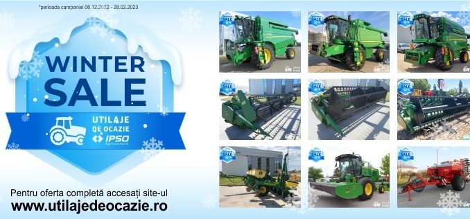 Ipso Agricultură a dat startul reducerilor de iarnă cu 𝗪𝗜𝗡𝗧𝗘𝗥 𝗦𝗔𝗟𝗘, o promoție specială, valabilă în perioada 06.12.2022 – 28.02.2023, în limita stocului. 𝗣𝗲𝗻𝘁𝗿𝘂 𝗼𝗳𝗲𝗿𝘁𝗮 𝗰𝗼𝗺𝗽𝗹𝗲𝘁𝗮̆ 𝗮𝗰𝗰𝗲𝘀𝗮𝘁̦𝗶 𝘀𝗶𝘁𝗲-𝘂𝗹: www.utilajedeocazie.ro