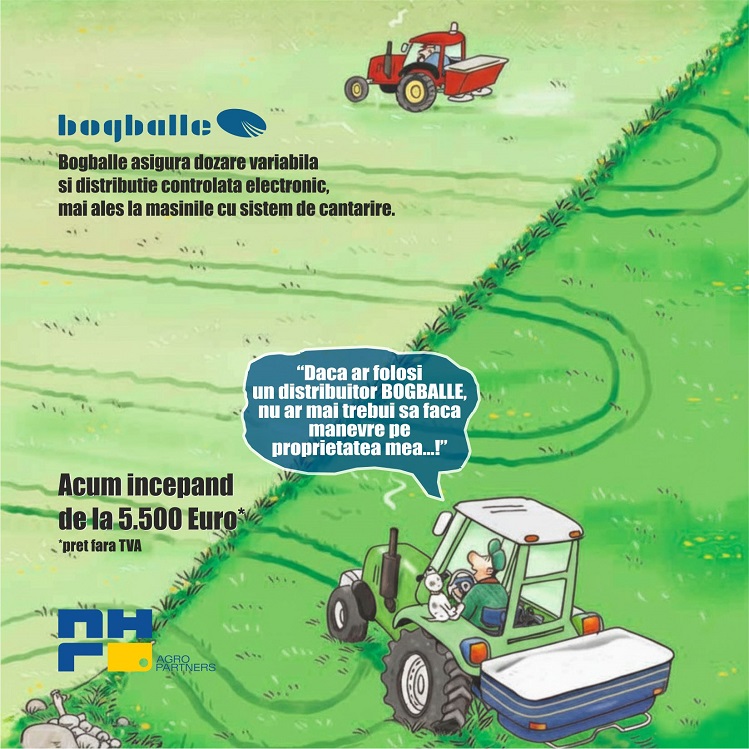 Mașinile Bogballe sunt disponibile, acum, la preț special, începând de la 5.500 euro + TVA. Pentru detalii sau oferte personalizate, nu ezitați să contactați reprezentanții NHR Agropartners!