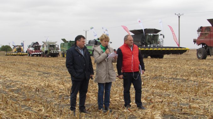 OVIDIU RANTA, expert mecanizare DLG InterMarketing, cadru didactic USAMV Cluj-Napoca: „La DEMO DAY am adus în faţa d-voastră tehnologii de recoltare a porumbului, dar şi tehnică de transport, condiţionare şi depozitare. Am prezentat şapte combine în lucru, fiecare având alocată câte o parcelă proprie. După terminarea recoltării, toate combinele au descărcat concomitent în lăzi marcate pentru a se putea vedea materialul recoltat iar ulterior a avut loc descărcarea în remorcile aduse de cei doi parteneri furnizori de tehnică de transport. Este necesar de urmărit fiecare combină în parte pentru a putea adapta nevoilor fermei d-voastră parametri ca: sistemul de rulare pe şenile sau pe roţi pentru diverse condiţii de teren şi de umiditate; distanţa între rânduri, înălţimea de tăiere; modul de tocare a paielor sau de lăsare a resturilor vegetale după trecerea combinei, dar şi materialul de recoltat. Este important ca la recoltat, mai ales atunci când avem cantităţi mari pe unitatea de suprafaţă să avem pregătită şi flota pentru transport, dimensionată şi corelată cu capacitatea de preluare a gropilor de recepţie, a sistemelor de uscare, a sistemelor de transport, condiţionare, silozurile tampon şi depozitarea”.