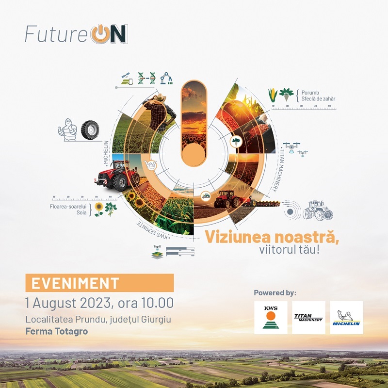 Companiile KWS, Michelin și Titan Machinery vă invită să participați la evenimentul FutureON dedicat inovației în agricultură organizat în data de 1 August 2023, ora 10.00, în localitatea Prundu, județul Giurgiu,