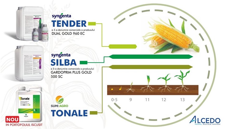 TONALE este un erbicid cu acțiune sistemica și reziduală, ce combate buruienile monocotiledonate și dicotiledonate anuale din cultura de porumb. Se aplică o singură dată pe sezon, atât în preemergenta (BBCH 00-09), în doză de 1,7-2 l/ha, cât și în postemergența timpurie, când plantele de porumb au 2-4 frunze (BBCH 10-14), doza recomandată fiind de 1,5-2 l/ha.