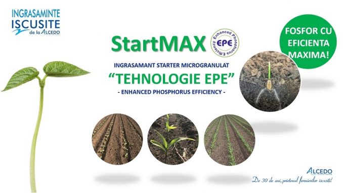 Acesta este StartMAX EPE (12% N; 43% P2O5; 9% SO3; 0,8% Zn), un starter cu macroelemente principale și secundare (N, P, S) și microelemente (Zn), cu o formulare optimizată pentru aplicarea localizată, concomitent cu semănatul.