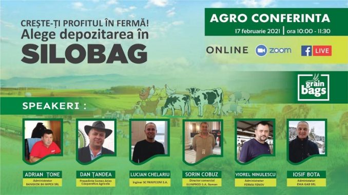 Mâine 17 februarie 2021, la ora 10, pe Zoom și pagina de Facebook a companiei Grain Bags România, Link Facebook: https://www.facebook.com/events/3803493886355614, va avea loc un nou eveniment online, marca Grain Bags România, dedicat de această dată, sectorului zootehnic.